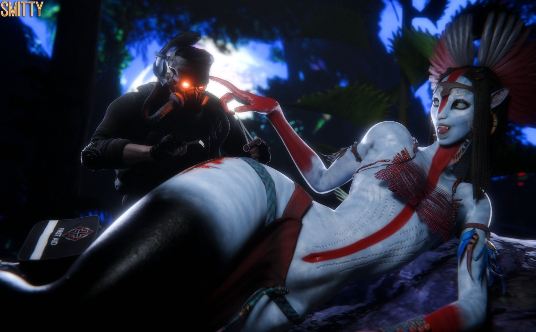 blue-skinned female
