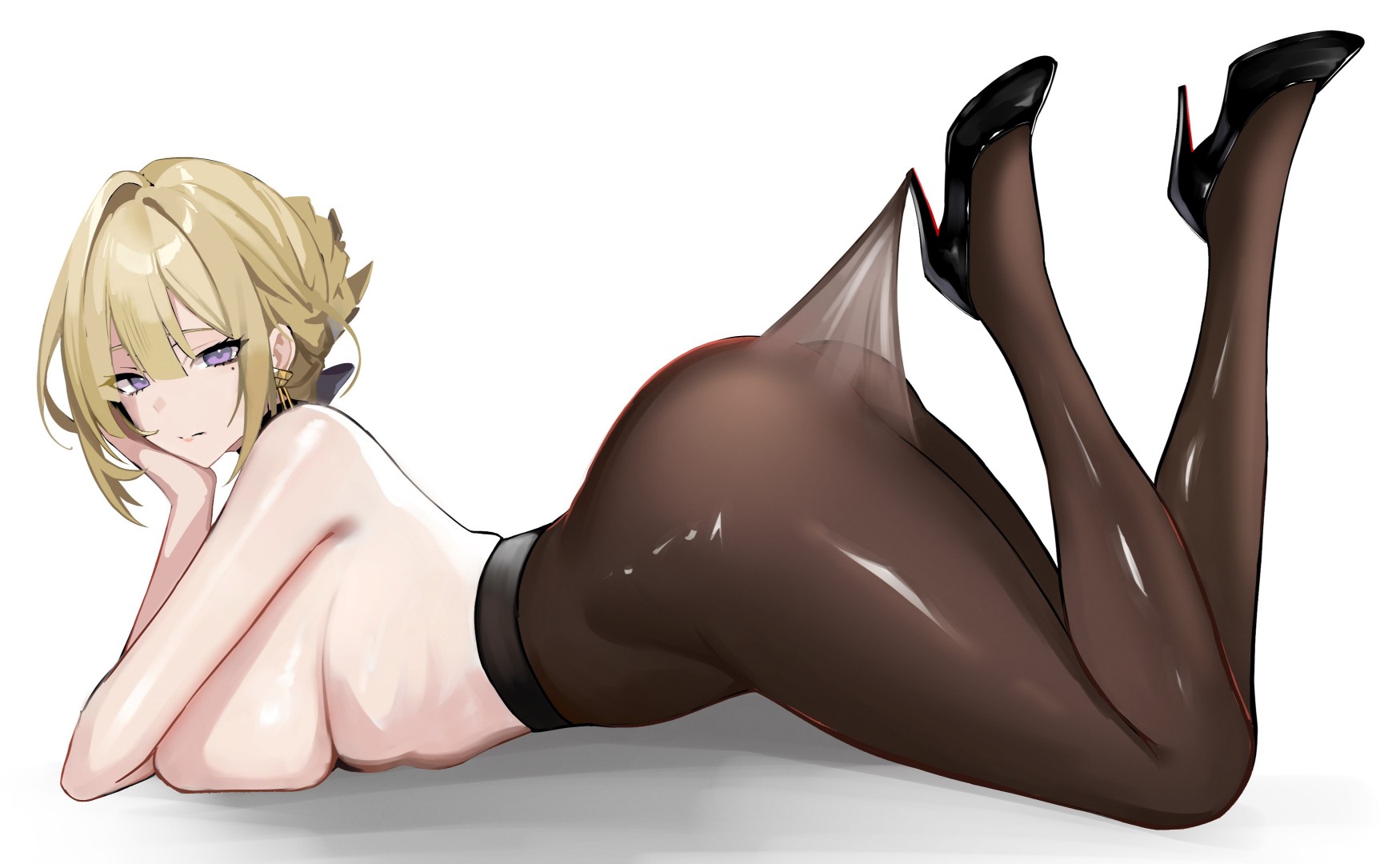 lace pantyhose hooked on heel (meme)